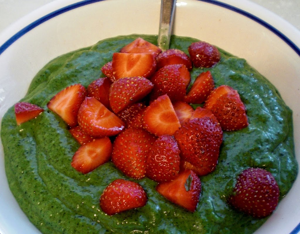 before we pour it all over a bowl of pawpaw, mango and apricot smoothie with spirulina, yummy! We devour our portions as I rave about Atma’s