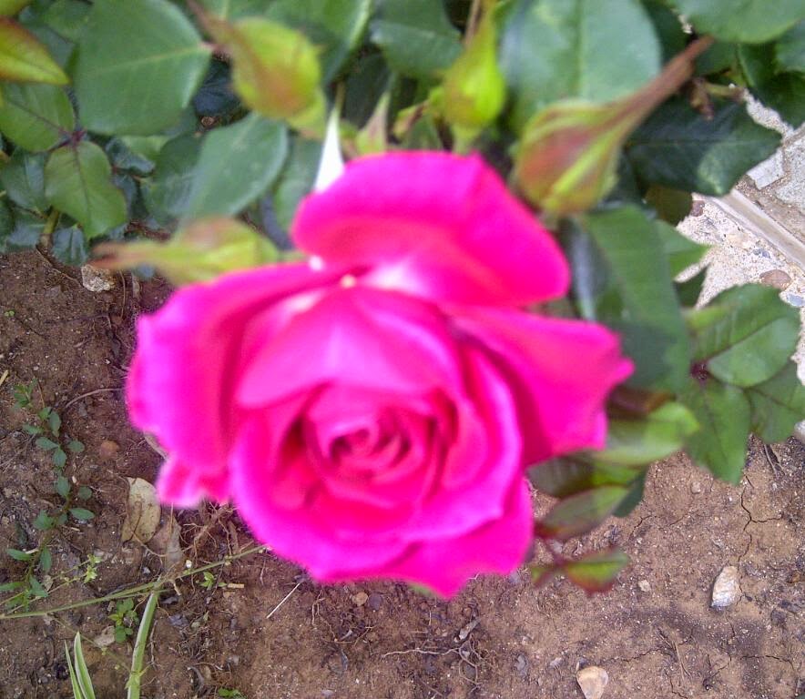 a glimpse of a blossoming cerise rose. To fully admire its splendor and
